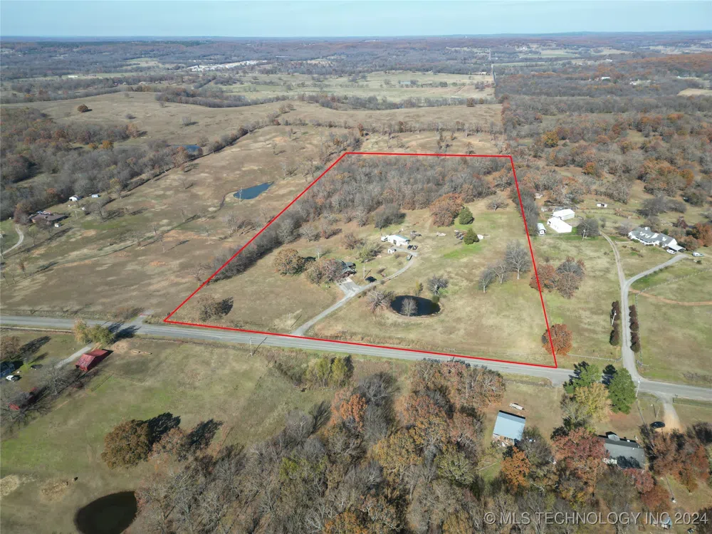This stunning 20-acre property offers a perfect blend of pasture and timber, complete with a large pond and prime hunting opportunities. The charming rock home features 3 spacious bedrooms and 2.5 baths, offering a comfortable and inviting living space. The living room boasts vaulted ceilings and beautiful wood floors, complemented by a cozy wood-burning fireplace for those chilly evenings. The updated kitchen includes sleek granite countertops and plenty of storage. Large dining space perfect for family dinners. A bonus room provides additional space for whatever your heart desires, whether it's a home office, playroom, or more. Lots of natural light and gorgeous views from every room. Relax on the gorgeous front porch with a swing or entertain guests on the covered back patio, perfect for outdoor gatherings. The land is fenced for livestock and includes a storage shed and chicken coop. With deer blinds already in place, it's an ideal location for outdoor enthusiasts. Conveniently located on a paved road, this property is just minutes from both Hulbert and Tahlequah, providing the peace and privacy of rural living while remaining close to town amenities. This property truly has it all, schedule your showing today!