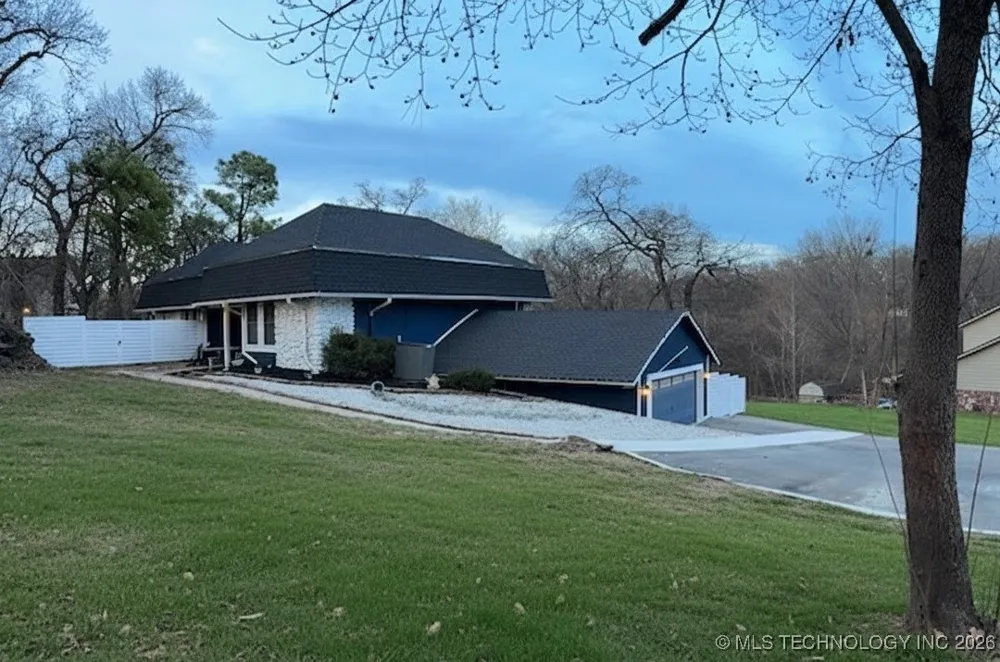 Unique, one-of-a-kind nature lover’s paradise in South Tulsa near 101st/Yale Ave. Jenks Schools. 2665 sq ft (CH) on 1.05 surveyed, fully fenced acres (CH) with no HOA. Perfect for the savvy buyer seeking 2026 design trends with expressive color, architectural style, and modern finishes. Features a beautifully remodeled 4 Bedrooms, 3 full Baths, open-concept kitchen w/granite countertops, and spacious living room with scenic view windows and wood burning fireplace (Mountain Lodge feel). Primary suite w/private balcony and spa-like bath w/soaking tub & large, tiled shower. Secluded 4th Bdrm w/screened porch & deck access. Outdoor living includes Trex entertainment deck w/built-in TV area, hot tub, and swimming pool masoned in the ground- ideal space for private relaxation. Finished attic of approx. 2000 sq ft (Owner) with potential for future third floor. Finished garage with climate control & epoxy floors. 2nd driveway w/RV hookups; 2 storage sheds. New roof, gutters, Smart ECO HVAC (2025). Amazing renovations completed in the past 5 years. A must-see in South Tulsa!