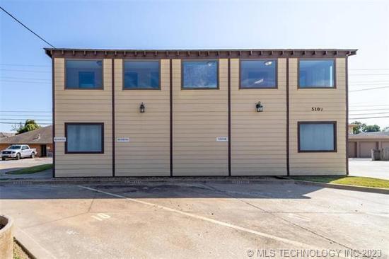 For Lease. This updated office space includes 3 single car garages beneath and off street parking. It would be perfect for your tech company, electrical/plumbing business, accounting office, or startup. The second floor space has 3 offices, waiting room, kitchenette/breakroom, and two bathrooms. The 3 single car garage spaces below are accessible from the alley. This ideal east downtown location is 3 blocks from the courthouse, 4 blocks from Conoco office plaza, and close to downtowns trendy restaurants and shops. Floorplan included is to show layout, square footage is not exact.
